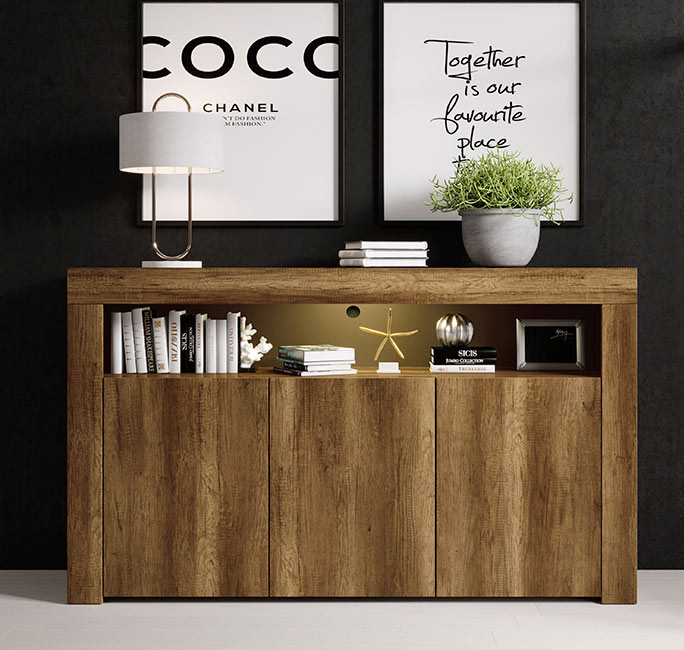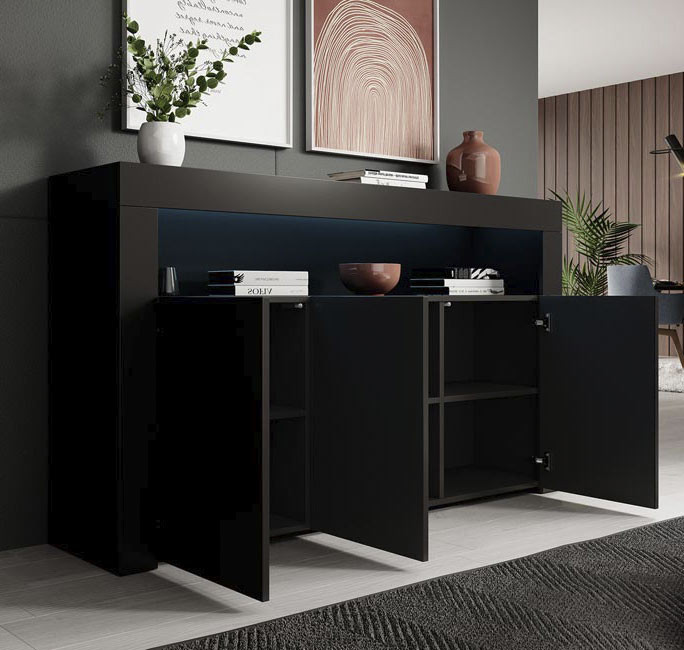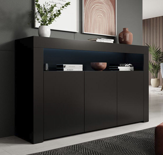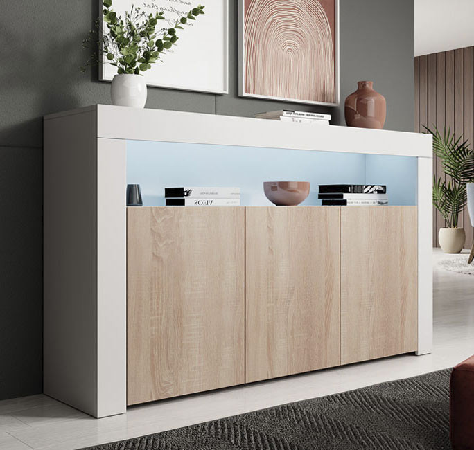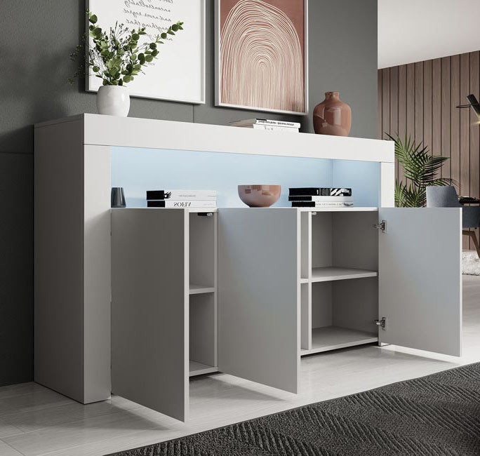 Aparador Lay mate com luz LED e 3 portas - Disponível em 6 cores