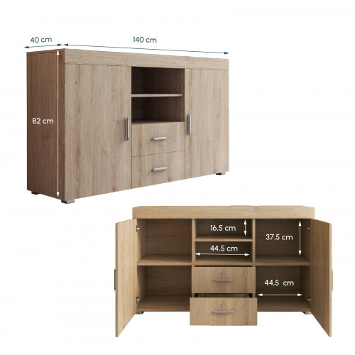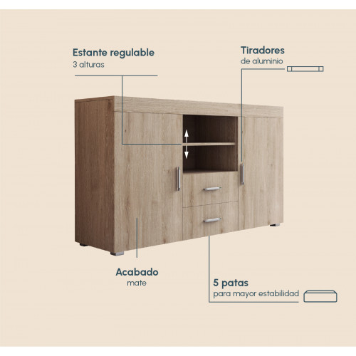 Aparador Ran 2 portas 2 gavetas 2 prateleiras