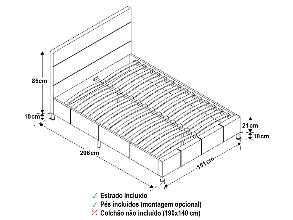 Largura x Altura x Profundidade Cama 140x190: 151x95x206cm