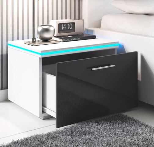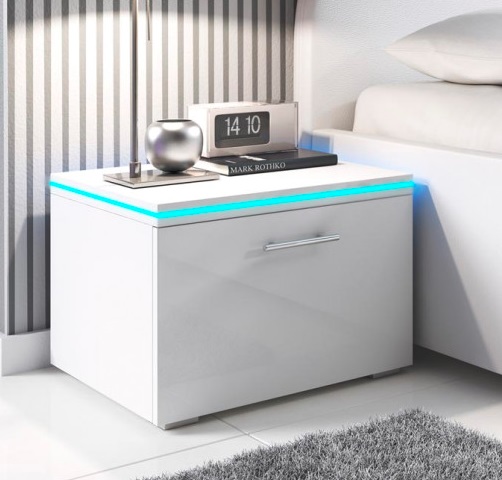 Mesinha de Cabeceira com luz LED e gaveta - Disponível em 2 cores