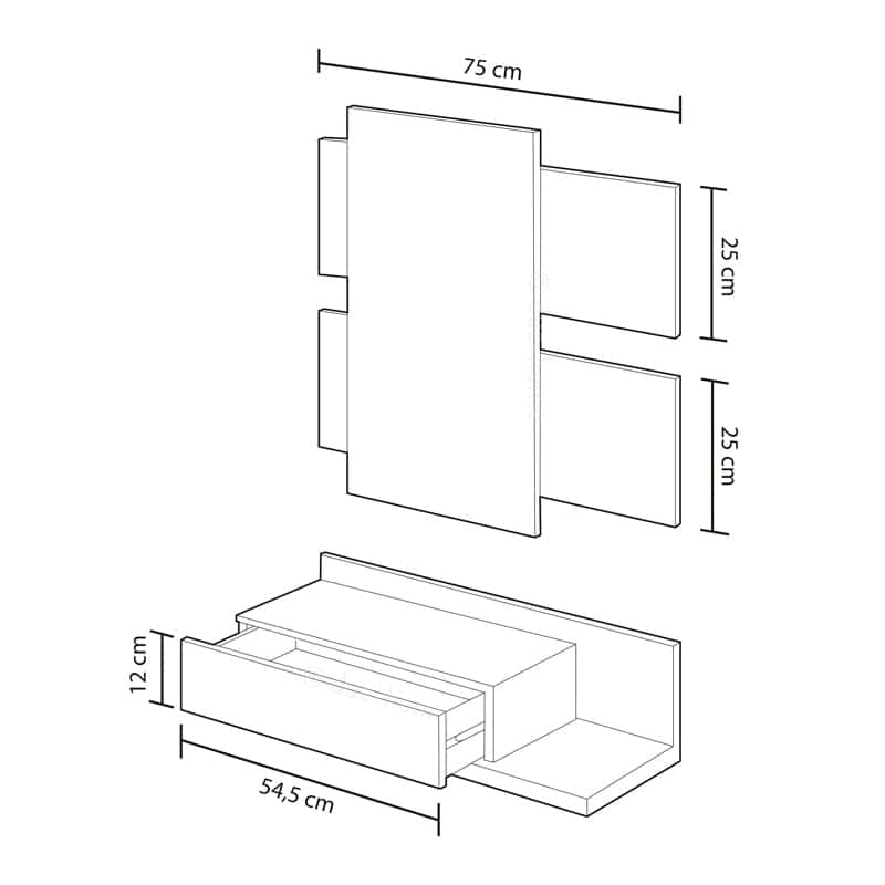 Móvel de Entrada com Gaveta e Espelho incluído - Disponível em 2 cores