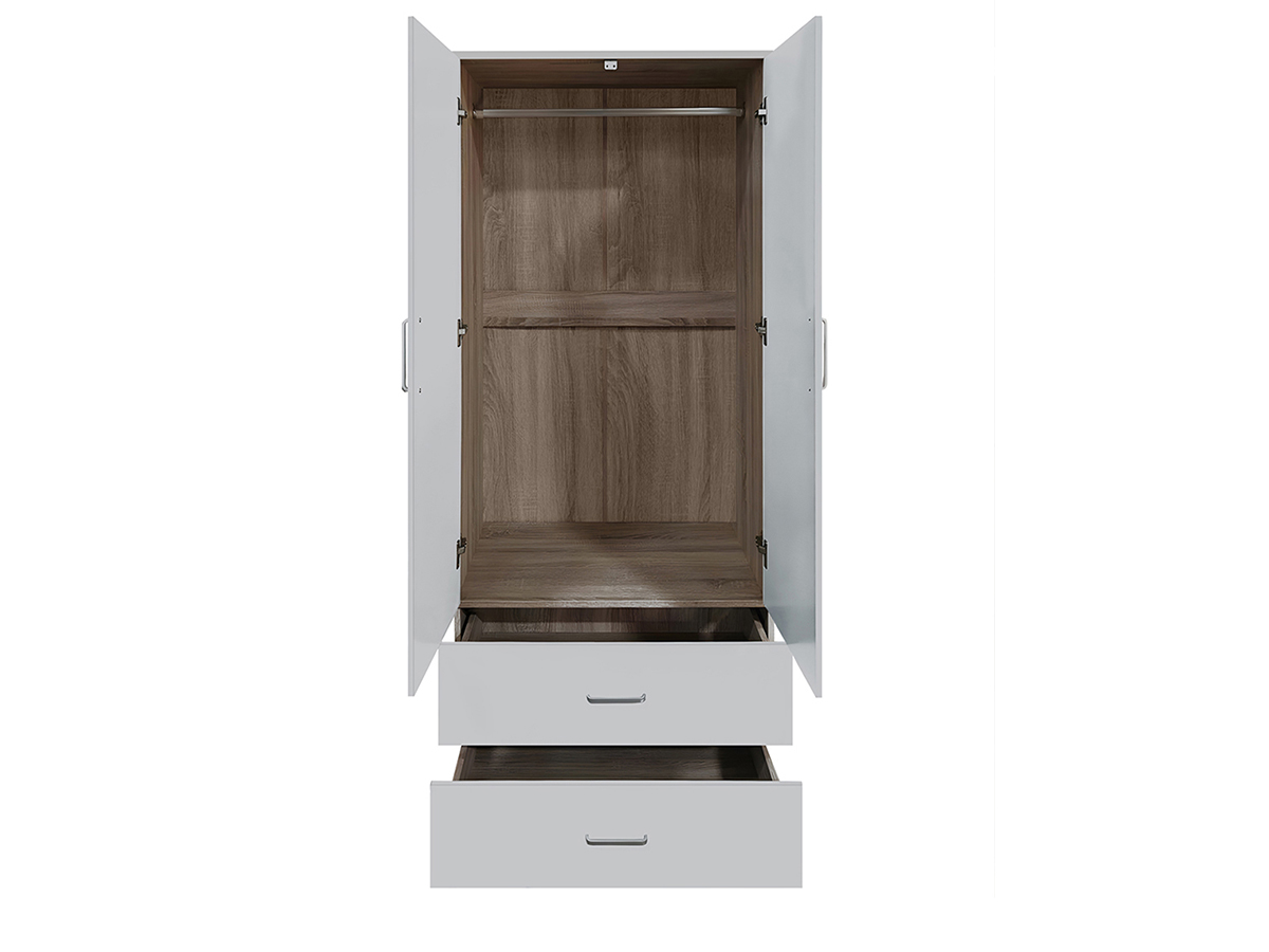Armário simples e funcional com 2 portas de batente Guarda-roupa individual estilo nórdico Ideal como armário lateral ou armário de quarto Inclui cabideiro e 2 gavetas