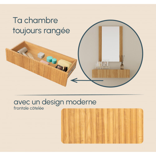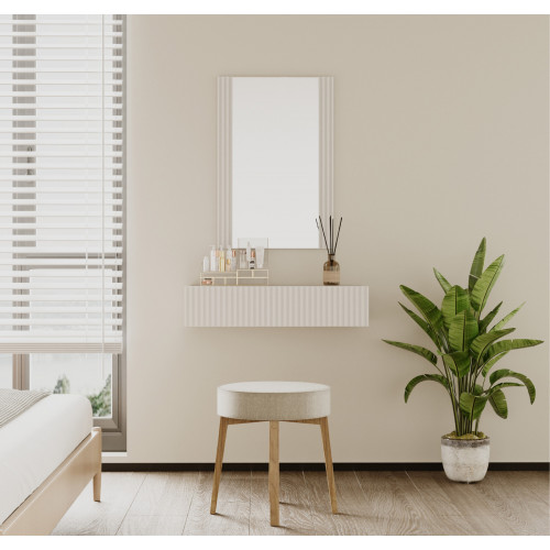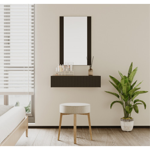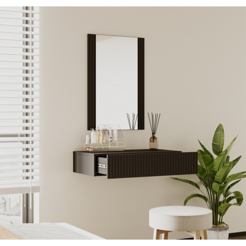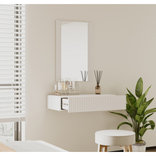 A solução perfeita para quem procura poupança de espaço e funcionalidade sem deixar de parte o estilo e modernidade. O conjunto inclui um espelho e uma gaveta suspensa, ideal para organizar maquilhagem, acessórios ou produtos de higiene pessoal.
